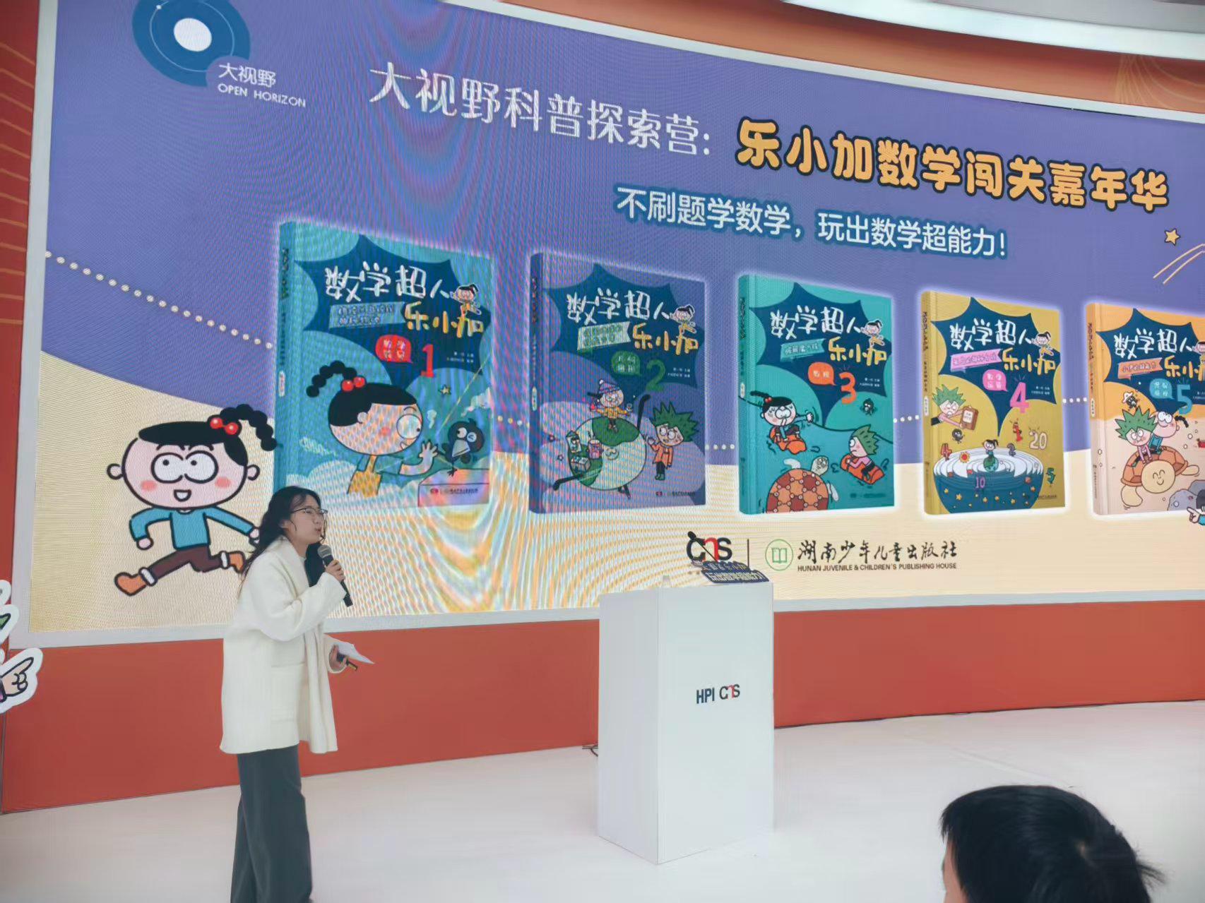 活动中,中央电视台少儿频道“新闻袋袋裤”栏目对湖南少年儿童出版社最新推出的《数学超人乐小加》的推荐视频率先亮相,鲜活的人物形象、精彩的故事片段、通过生活场景学习数学的理念,迅速吸引了小读者的目光。